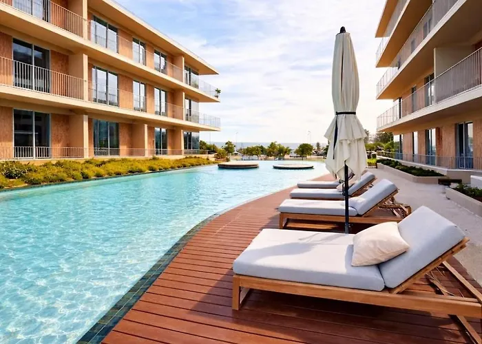 Situated nearly 5 minutes' walk from New Fort Beach, Horizon Sand Beachfront Apartment - Pool View, Quarteira Bicas entices guests with an indoor pool. The Aquashow Park is located 4.1 km away, and the Roman Ruins of Cerro da Vila is 3.5 km from the spacious apartment.